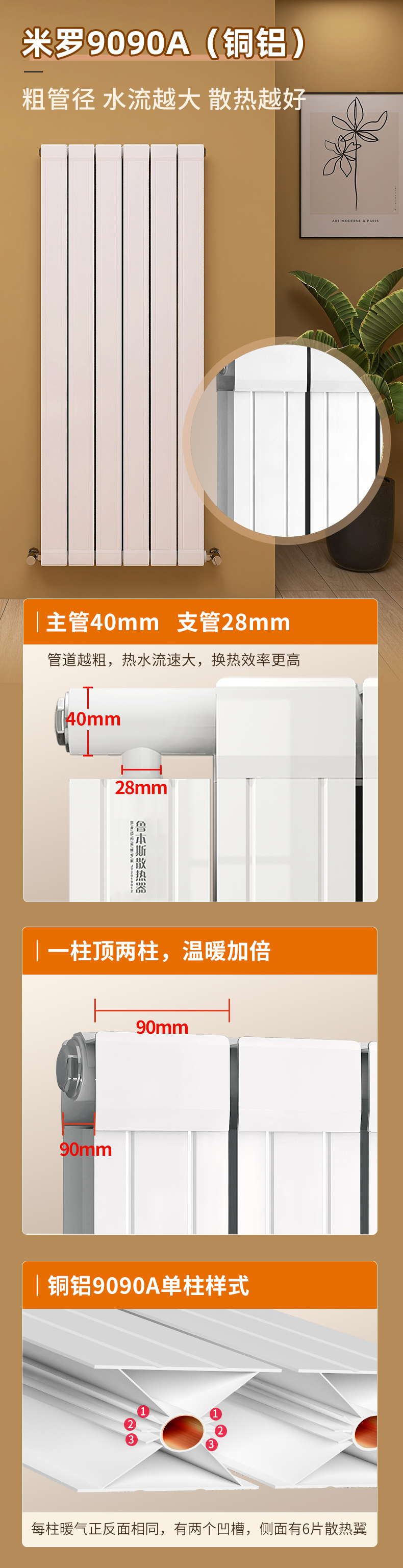 銅鋁複合暖氣片米羅9090A_香蕉精品视频家居采暖官網